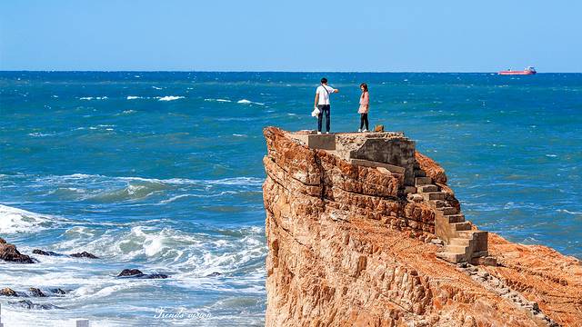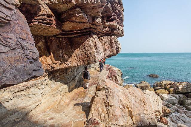 九丈崖海岸,顺着木梯栈道一路可以到达月牙湾景区,步行时间大概20多分钟