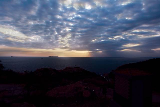 来这里的时候是第3天下午,第3天人其实已经很累了,尤其是到这个海滩的时候,就想找个位置坐下来,我们来到这里本来是准备拍摄日落的,但这个海滩的视角不是很好,日落方向有山峰遮挡,需要向长山尾方向继续走,但我们实在是累的不行,哪里都不想去,强撑着走到了离长山尾还有500的莲花池附近,就再也不想走了,而今天天公不美,有厚厚的雾气,太阳落到离地平线2杆的时候就被雾气遮盖,没有云层没有霞光。