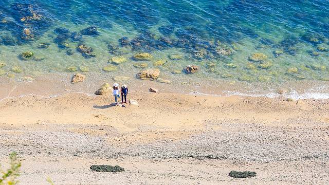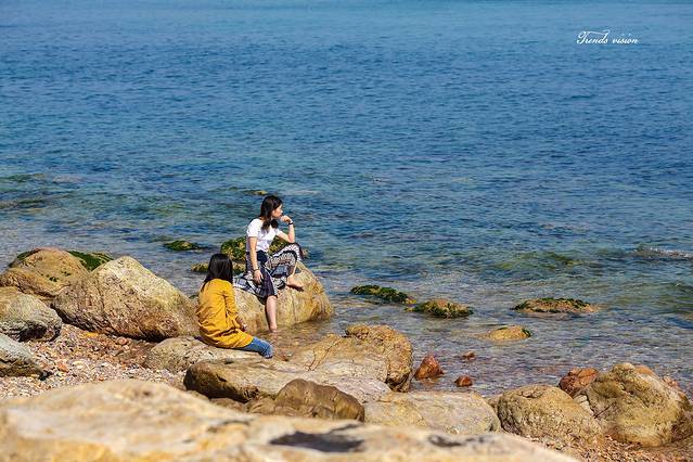 长山尾附近也有一个球石海滩,这里的水质更加的清澈,来这里的时间最好选择早上10点以前,下午4点以后,因为这片海滩阳光太充足了,商业化不浓,连个遮阳伞都没有,晒、晒、太晒了。美女们出游一定记得防晒!防晒!