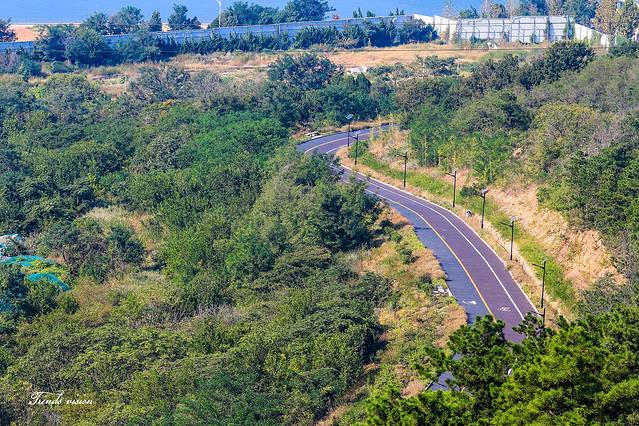南岛林海是重点,风景很好,6号风机下到山下,有一个球石海滩,水质很清澈,还可以沿着海边的木梯栈道,一路看海徒步走到黄渤海交际线、在长山尾的水质尤其的好,海滩上有很多很大的球石,浅海处翻开球石,就会看到小螃蟹、小鱼。