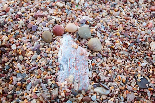 月涯湾向东走一个红石海滩,滩涂上都是鸽子蛋一般大小的卵石,被大海大浪淘洗的滚圆滚圆的。