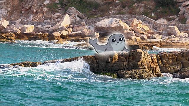 钓鱼岛海豹礁,最坑的景点,到这里的时候广播里用甜美的声音说道:“前方的岩石是海豹礁,耐心的等待,会有海豹从海底游上海岸的哦”,咱于是一脸单纯的耐心等待,结果船才停留了2分钟不到就开走了,全程除了礁石就是浪花。只好后期P个海豹安慰下自己。