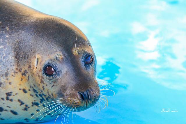 发呆的功夫,一只海豹突然探出脑袋来,不屑的看着我的相机镜头