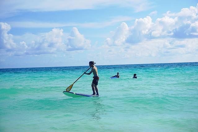 我们在白沙滩上玩了一个挺好玩的水上运动——stand up paddle立桨冲浪,700比索一小时。