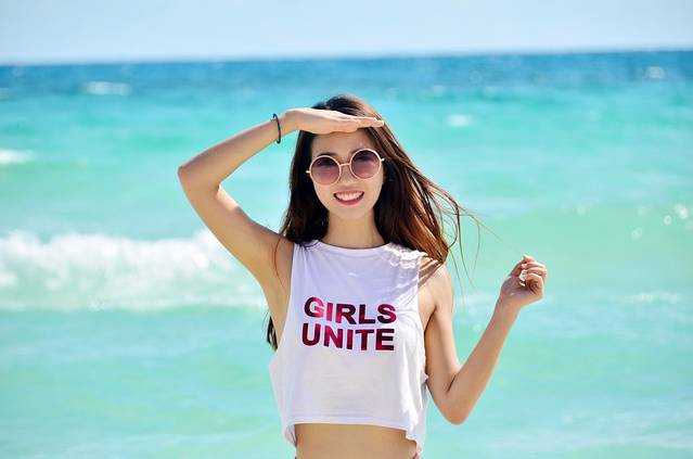 这个薄荷绿休闲背心是给人最大惊喜的一件衣服,甚至赢了白T!为什么?因为长滩岛的海的颜色啊!长滩岛的海颜色非常清透,也是偏薄荷绿的颜色,简直绝配!