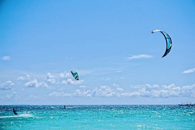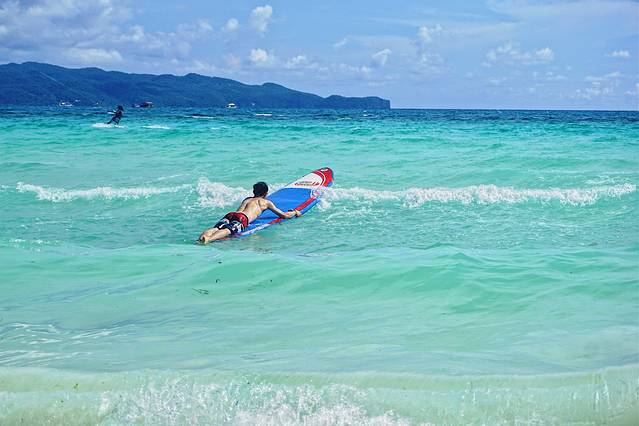 白天,可以涂了防晒和椰子油在沙滩上晒太阳,可以在海里游泳,可以玩一些水上运动,比如kite surfing,stand up paddle……如果再来一杯冰啤或长滩岛网红饮品芒果冰沙,那就更惬意了。