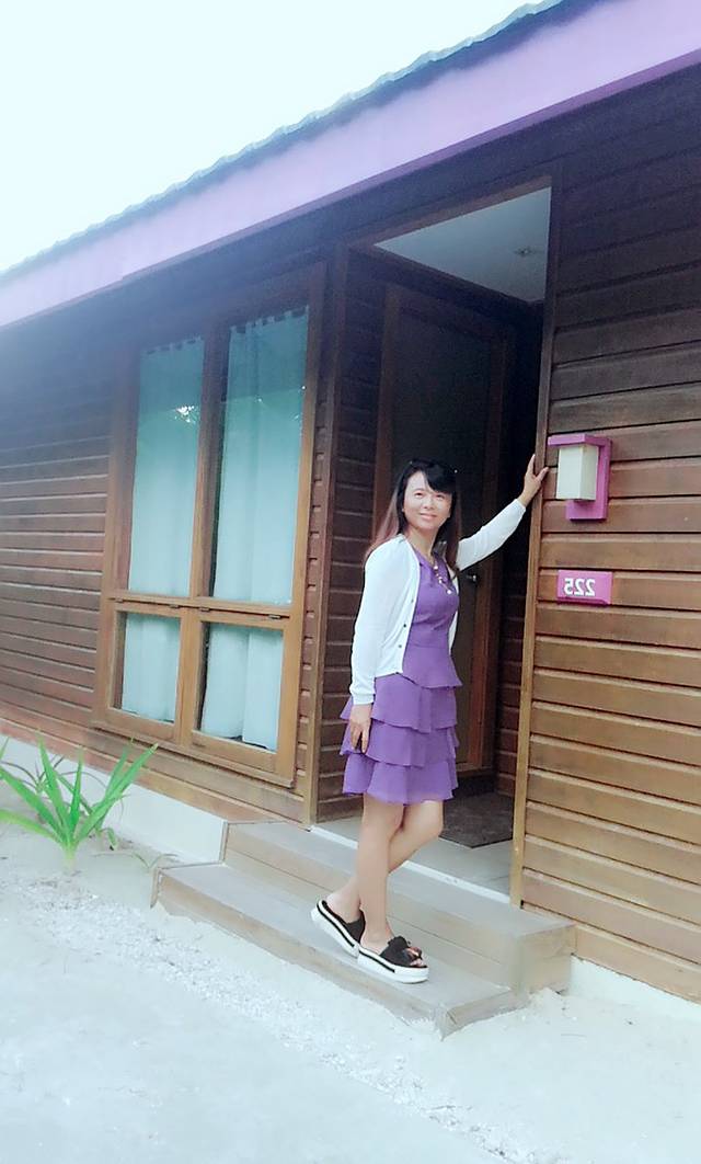 到达幸福岛码头,直接在码头接待室等待分配房间,接待员是两个年轻的中国女孩,行李服务员会挨个送到房间。我和女儿房间是225。房间后门就直通海滩,淋浴是半露天的(说个搞笑的:下午上厕所大号,太阳西晒,还得打伞,不然太阳晒得很啊。。。屁股都要晒伤滴,哈哈哈哈)。