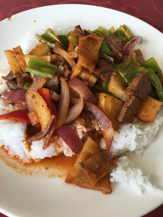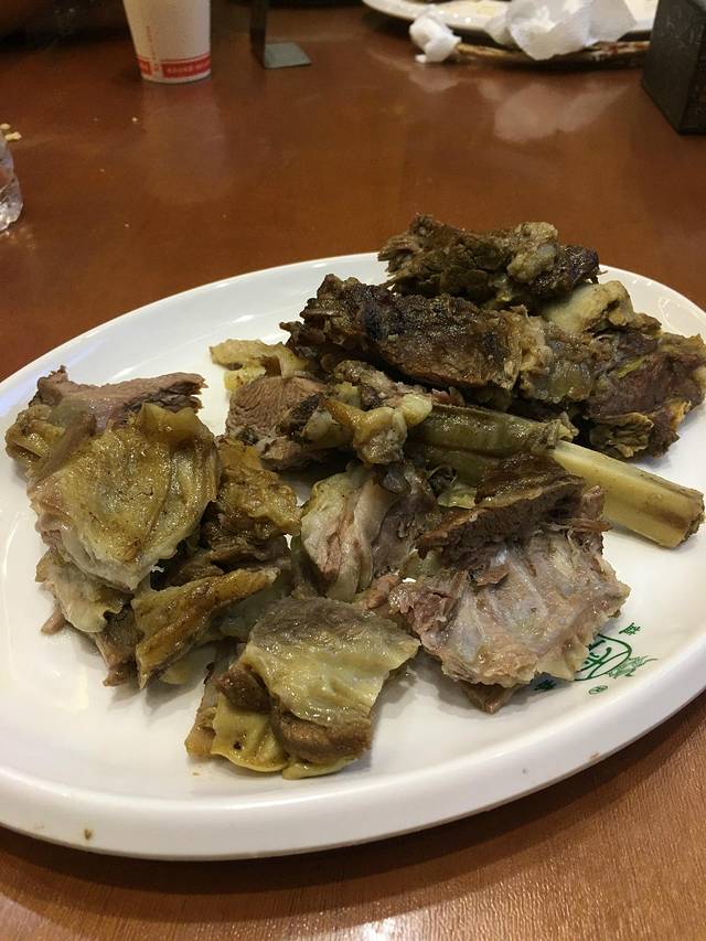 看完东莞清真大寺,我们走路先去益鑫羊肉手抓馆,真的是网红店,还好我们到的早,一到就开始排队了,在门口排队点餐,然后进店还得排队结账拿羊肉,还在排队等位置,位置是你自己去找,谁先找到谁先坐,我们有3个人,分开行动。而且有很多他们家的特色菜都没有了,酸奶没有了,红烧洋芋也没有,然后我们就3个人点了一斤的肉,一人一碗饭,就这样简单粗暴,就只吃特色的菜哈。因为人实在有点多,赶紧吃完去莫家街继续吃。