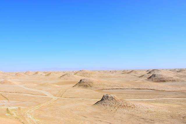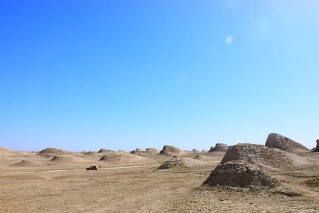 然后开始出发去看雅丹地貌。一路的公路,都没什么车,非常的棒。路上也有好多人停在马路边上拍照,随便一处都很美,所以建议大家最好找没人的地方,不要看有车停你们也停。人多拍照就比较麻烦。果然是地广人稀哈。没有人。