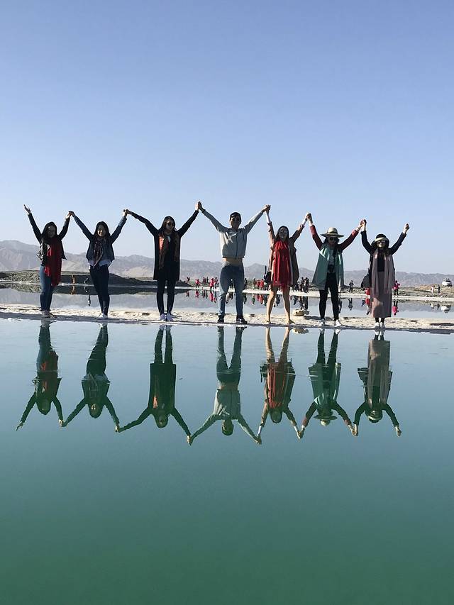 翡翠湖的水的绿色的,也是盐湖,自然形成的。跟翡翠一样。位置还不好找,周边一片荒凉,等开发好了。估计会很漂亮,翡翠湖拍的倒影非常赞。半个小时就可以参观完。地方不大。就好几个湖,最好早点去,人会少点。我们是9点到的那里。人就多了。
