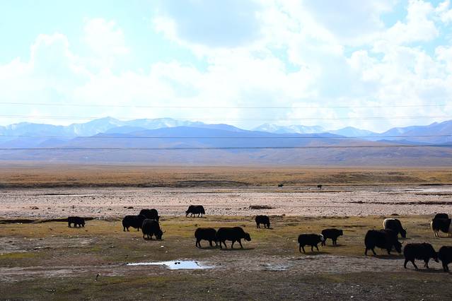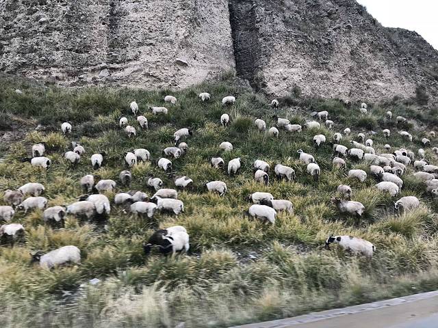 然后去了日月山,一路雾都慢慢消散,景色也变得非常的好。一路上见到好多羊群还有牦牛。