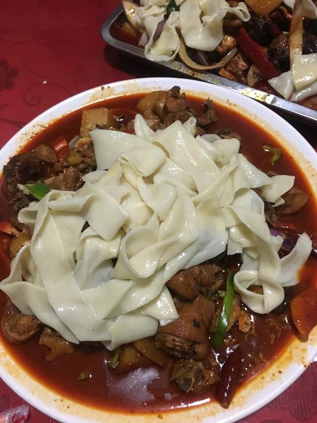 后来小马哥带我们去一家新疆东乡手抓吃大盘鸡,位置不好找,但是人也蛮多的。得排队。听说特别正宗好吃。满满的两大盆,超级满足的。虽然就餐环境有点不好。但是很好吃。