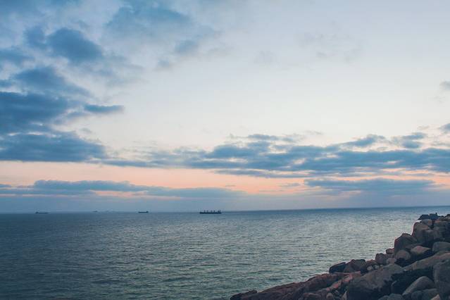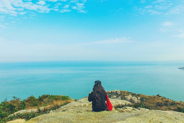 爬上来后,豁然开朗,一望无际的大海。