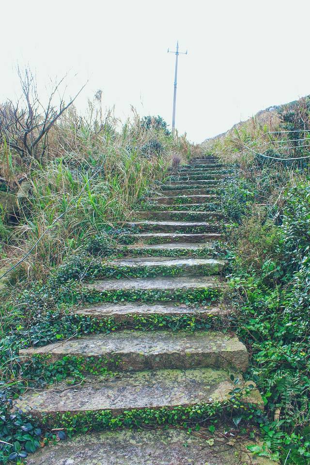 顺着石阶一直往上走,就是电力风车的方向,看着好近,可是山路很难走。