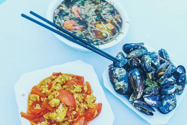 要吐槽一下这里的淡菜。老板给我们推荐的这里的特色菜,是一种海鲜,第一次吃,一股浓浓的柴油味,刚开始以为就是这种味道,也没有多想,但是越吃越恶心。后来,发现他们打渔几乎都是在岛边,这里不停地有船只停泊,加上打渔的船也都是停在附近,可能那股貌似柴油的味道真的就是柴油味吧!