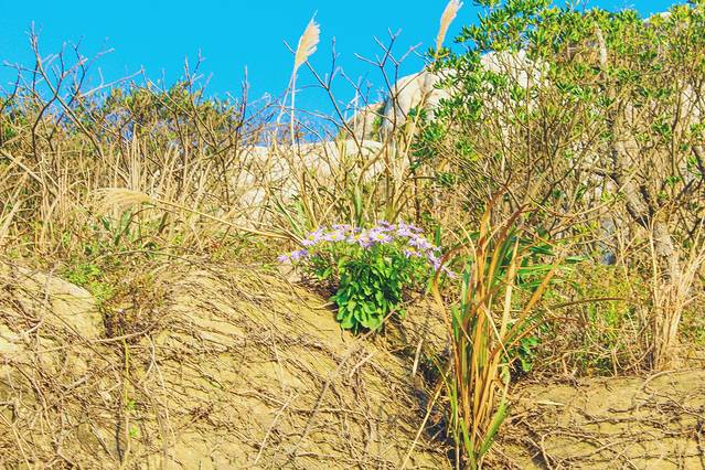 石头长出来的花,在蓝天的映衬下,也格外的鲜艳。