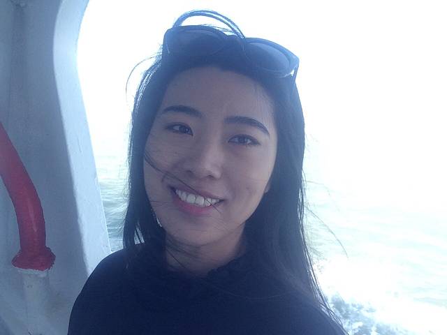 一路的海水都是泛黄的,大家都走到船外吹风。