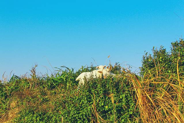 途中遇到了2只小羊,被路过的游客,各种挑逗,格外受宠。