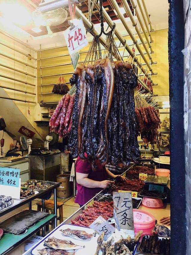 上面这家长乐腊味店,感觉不错,除了老板关于价格不太好说话外,其余的口味还行,推荐他们家的特殊加了鸭肝或者鹅肝(记不得了)的腊肠,味道很中意啊!