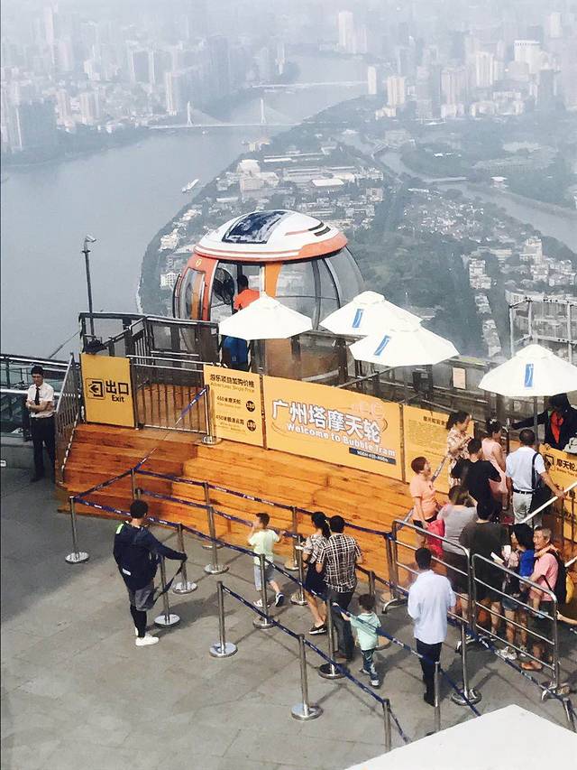 小蛮腰的确漂亮,厉害了,好像号称世界第三。上边的图有价格表,孩子起的比较早,我们8点左右就到广州塔了,不过人家应该是9点左右才开始售票,因为十月一期间人多,广州塔人流控制,所以在网上只能买预约票,而且都是下午的,所以我们就自己过来买,我是第一批冲进售票厅的,买的最高套票,有个项目是400来米的跳楼机必须包括在里面,我和老婆谁也没敢坐,不过真有敢坐的,厉害了!!!!