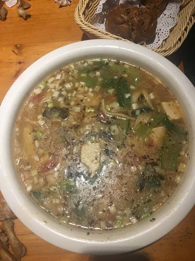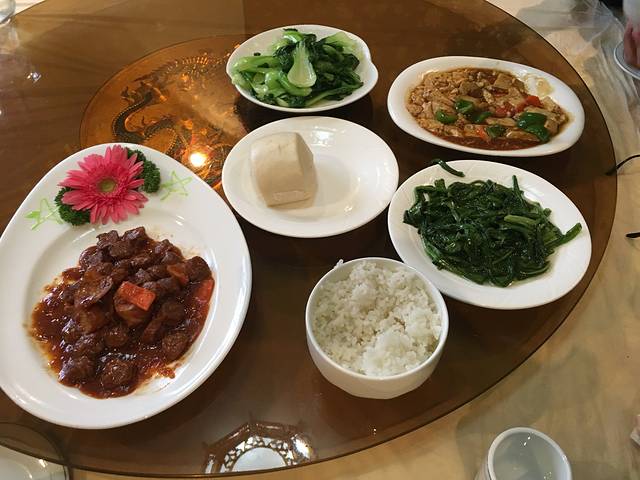 问服务员这个面一份多少,服务员大概比划了一下,那个胖子还在想够不够他一个人吃,等到服务员端上来的时候我们默默不做声了,12块钱一碗的面,四个人管够。这顿饭之后我们说以后点餐先悠着点,不够再加。