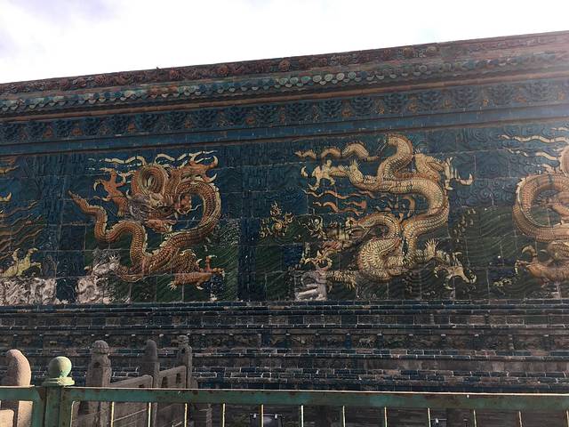 10块钱的门票,进来就看到一堵墙上的九条龙,话说中间这条龙正对着代王府的中轴线,代王府在维修就没进去。