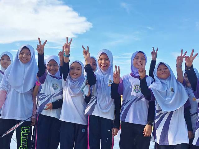 又是同样的路,去潜店的路上经过运动场时,发现一群小男孩在踢足球,一群小女孩则在打羽毛球。那群小女孩发现我们在给她们拍照时,都跑了过来。其中有一个人问:你们从哪来?椰子惊讶的叫道:你会说中文?于是那女孩又问:Where are you from?