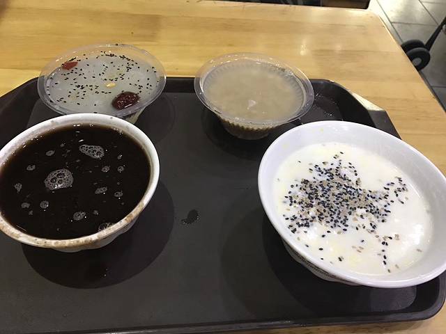 兰州的甜品大多是热的。甜胚子凉的,很像酒酿;牛奶醪糟,强烈推荐,别的地方吃不到的味道,超浓郁