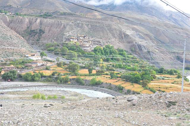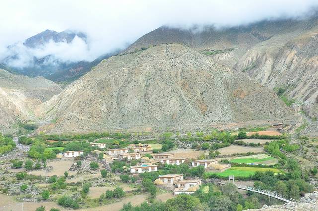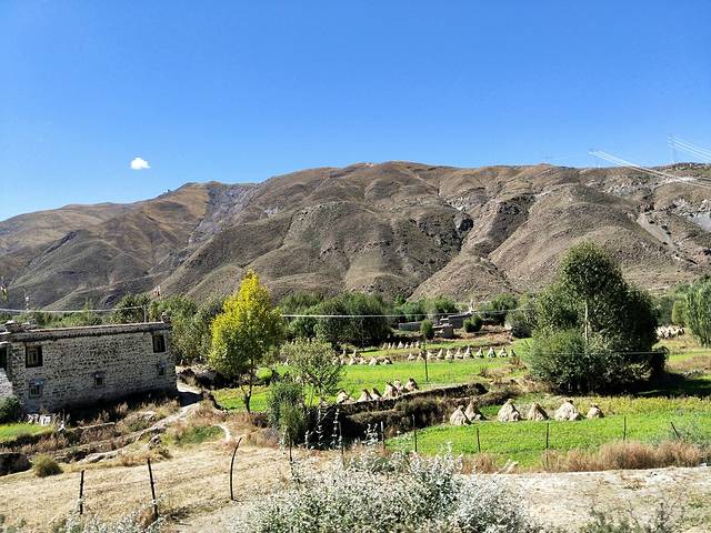 前往然乌湖的路上,山体植被不是很明朗,但是错落在峡谷之间的小村落,正是稻熟麦黄之际,别有风情。