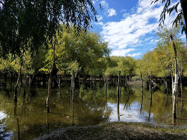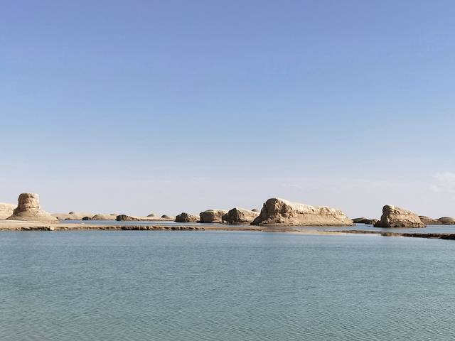 10月9日,本来想去胡杨林看看,但因胡杨林修整一年,不对外开放,作罢。前往水上雅丹。一路畅通无阻,戈壁、沙漠、沙丘,尽收眼底。水上雅丹是世界上唯一一个水上雅丹地貌的。目前还不收门票,F4去的时候景区门口还在修。估计过段时间就要收门票了。