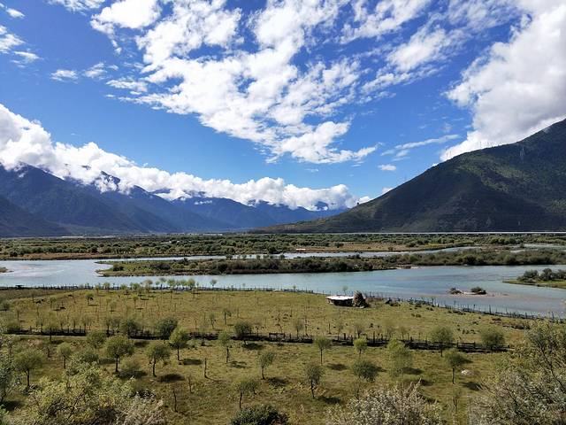10月4日从雅鲁藏布江大峡谷前往八一镇,路经藏布江的分支尼洋河,本来想看3300年的柏树林,因整修闭园,稍感遗憾。六七点达到拉萨,入住雅菲康桑青年旅舍(190RM/晚,大床),前往八廓街美食城吃的藏餐,喝了酥油茶,吃了好多土豆。。。某位的男朋友为了给惊喜,空降拉萨,着实撒了一把狗粮。