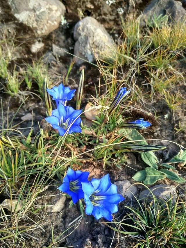 虽至秋季,没有漫山遍野的花朵,但是满山的龙胆也是能看见的,颜色非常美。