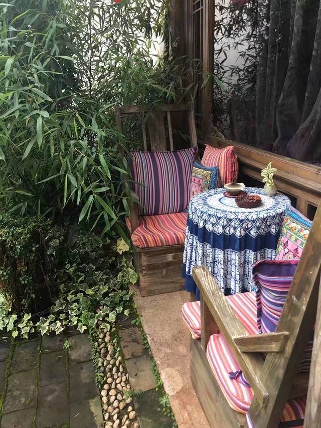 束河离大研很近,有公交也可自行乘车,我们选择了滴滴打车,直接送到酒店。找了一间很意境的客栈“篱笆墙的女人精品客栈”,位置有点偏但是环境特别好,即便你不出门就呆在客栈也是很享受的,两层楼的小院,一楼有各种休息区,二楼还有喝茶看书的地方,总之我是很稀饭...老板是位湘妹子,人特别好呢,我们离店的时候还给我们发信息祝平安,超暖心哦....