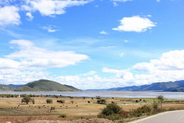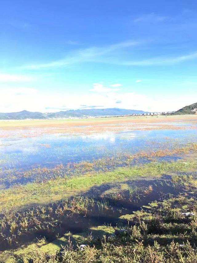 纳帕海真的很大,距离独克宗古城7公里,可以租电动车导航前往,比较方便又省事。沿路途中都是风景,这个季节草木茂盛野花遍地。纳帕海与身边的依拉草原相互依存,此消彼长。成了一座湖泊。