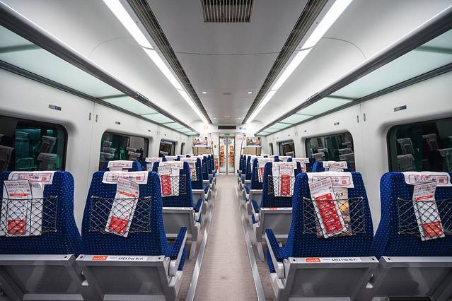 机场直达列车车间内部。非常整洁干净,设施较为完善,且座椅很舒适宽敞。远远值回票价!简直是享受 d=====( ̄▽ ̄*)b