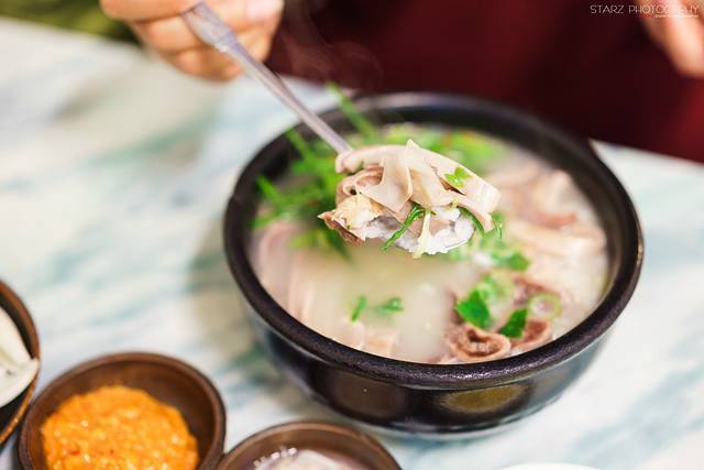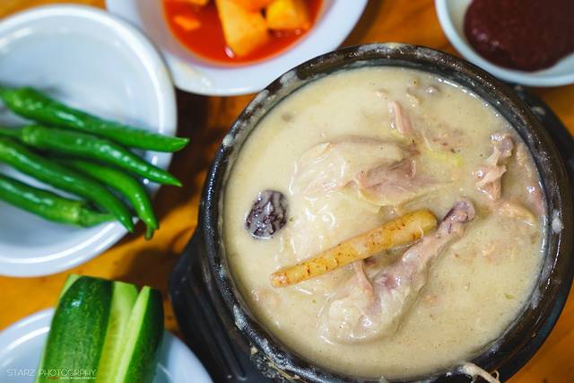 参鸡汤作为健康补养汤品是韩国美食最具代表性之一,而【元祖湖水参鸡汤】是首尔比较有名气的一家。拥有26年传统,只专一参鸡汤一种,其汤味道浓郁,不像一般店铺里面吃到的那种清汤型的参鸡汤,而是汤底比较浓郁、浓稠许多,其精华浓缩在汤里,显得极其健康!非常推荐品尝~除此之外,土俗村参鸡汤和高丽参鸡汤两家店也甚是出名参鸡汤名店,吃货们有食欲也可以试试哦~