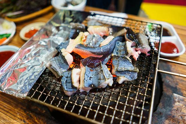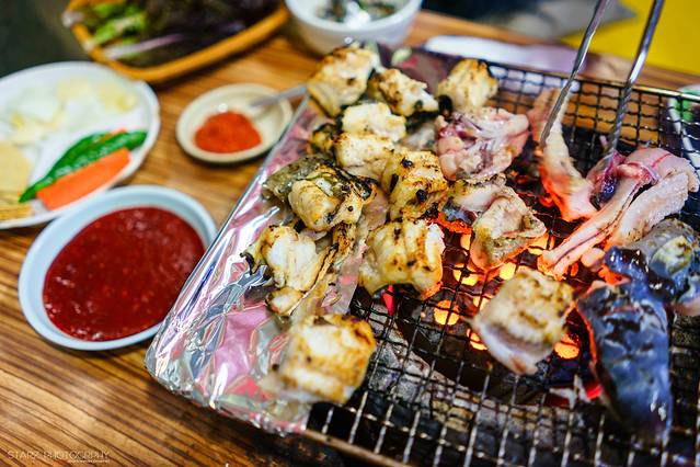 在扎嘎其市场附近的烤海鳗的小店很多,你随便选一家基本都差不多。而海鳗的另一种吃法就是炭烧!相比之前吃得酱烤鳗鱼要更为鲜味可口。对于喜欢吃海鲜的中国人来说更一餐美味~配上小酒一杯,简直是人间极品! 炭烧海鳗是我在韩国这么多天吃过最喜欢的一顿,直到现在还依旧回味~