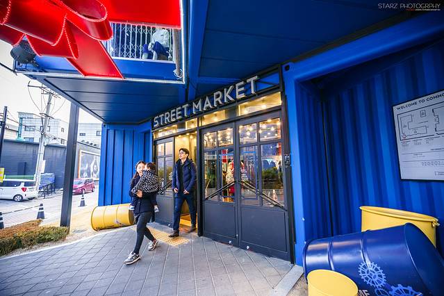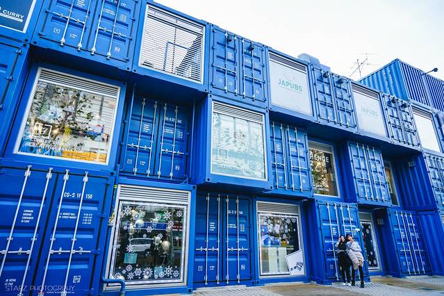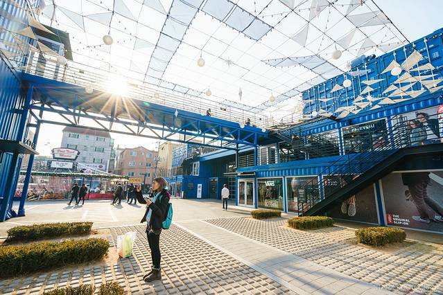 在首尔建国大学附近有一个比较有意思的购物中心——COMMON GROUND。这是一个以蓝色集装箱改装组建而成的商场,非常有特色!就算不进去商场里面购物,在外面和亲朋好友一块拍拍照也是挺有意思的!眼看许多胆大的韩国妹纸们都回来这里拍摄服装美照,也有不少摄影爱好者携带模特在此进行时尚街拍。反正COMMON GROUND购物中心就是那么一个深受年轻人喜爱的时尚之地,来韩国不妨也到此一游~
