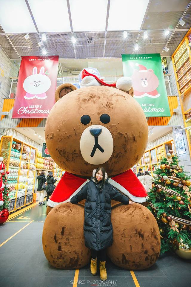 明洞的LINE FRIENDS STORE总是人气爆棚!守在门口的大熊也换上圣诞装束,可爱无比!不过人流较多,拍照需要排队哦!里面也有许多韩国独有的公仔,韩版风十分可爱,如果你是LINE的粉丝,那么来韩国可真不要错过咯~买买买!