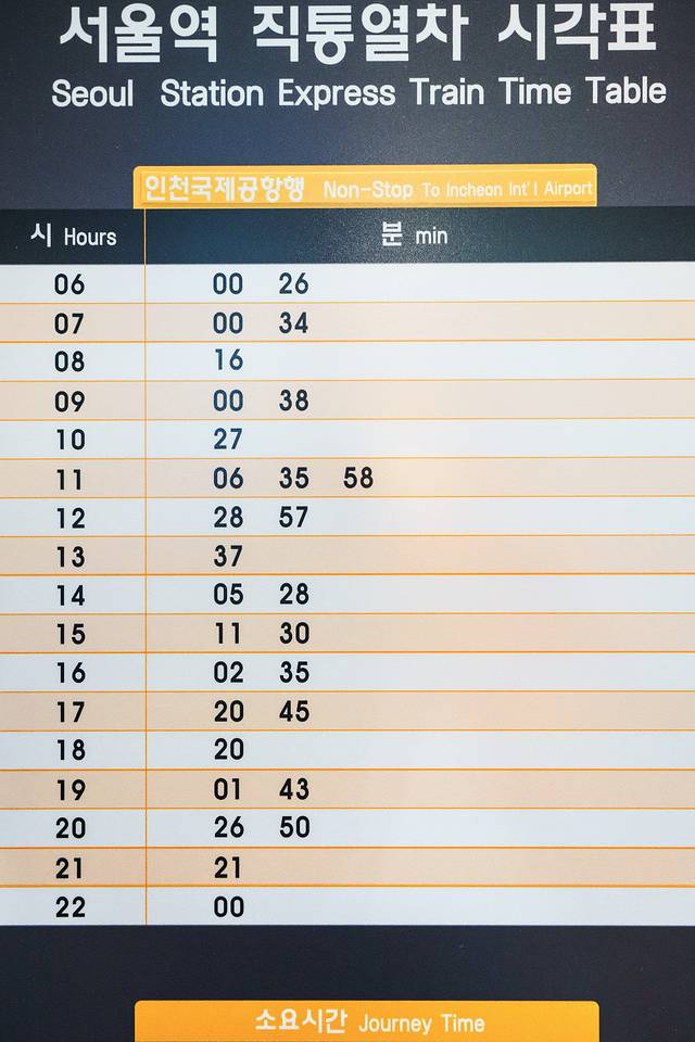 附上从首尔站到仁川机场的直达列车发车时间表。仅供参考!