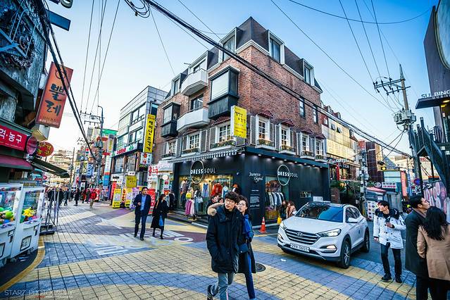 来到一个陌生的城市,我一般需要熟悉这种全新的氛围,由于个人比较抗拒人流密集的旅游热门胜地,但要想尽快融入崭新的环境,那么选择去商业街走走,也是一个不错的选择。在首尔说到比较火的商业街,非明洞和弘大莫属了!