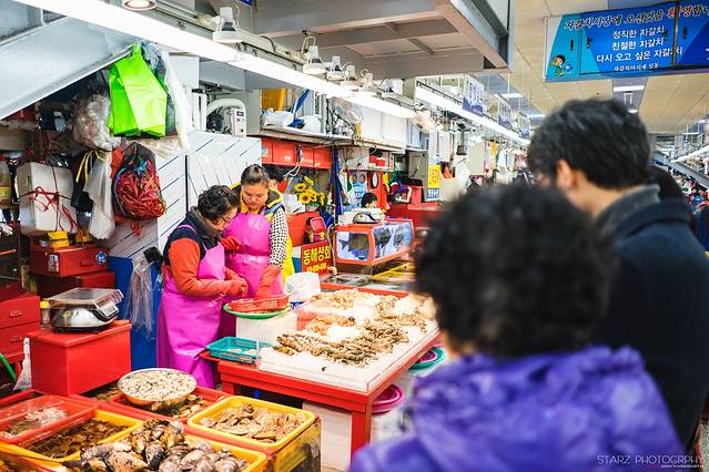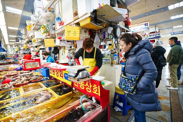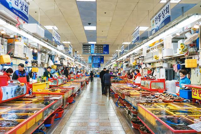 既然釜山是韩国第二大城和第一大港口,那么丰富的海产资源是十分让人垂涎的。札嘎其海鲜市场不但是韩国的海鲜批发中心,也提供零售,周边的海鲜店已超过300间之多。不管是买回去自己烹饪,还是在这里买了直接带到店铺内代为烹饪,或者干脆在店内点餐都可以让你用低廉的价格享受到新鲜海鲜的美味。