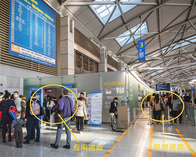 抵达仁川机场后就可以直接去安检了!由于在首尔站办理登记手续时已加盖了VIP通道的盖印,所以我们不需要走普通通道排长队去安检,直接前往左手边的专用通道进行安检即可。b( ̄▽ ̄)d