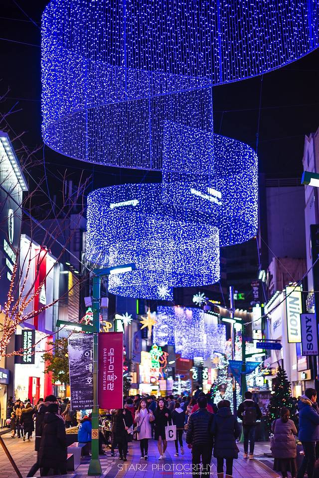 圣诞前夕的明洞周边都充满了圣诞节的气氛,各种漂亮的圣诞树闪耀着迷人的灯光。明洞可以说是首尔极其繁荣的步行街!基本从世界各地来韩国首尔的游客都会来明洞逛街,为什么?嘻嘻,理由很简单,明洞不仅各种名牌商店外,还有许多平价的特色小店,各式韩版服装、首饰、精品等都是应有尽有。很多知名的品牌店也坐落在明洞,除此之外,在明洞逛街不只能购物,最重要能在这里吃到非常~非常~非常多美食!!无论你是哪国的游客,来到明洞,唯有美食你是绝对不能辜负!圣诞前夕的明洞周边都充满了圣诞节的气氛,各种漂亮的圣诞树闪耀着迷人的灯光。