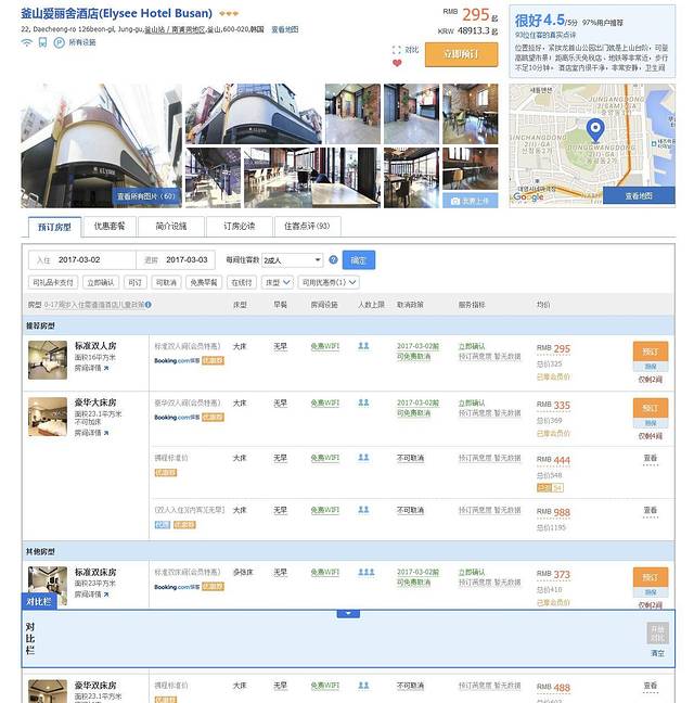 选择这家酒店最大的原因就是地理位置极好,性价比也很高,房间大且舒适!卫生间设备齐全,有浴缸配套,最让人惊喜的是浴室里提供蒸桑拿,消除一天的疲劳最佳选择~酒店临近龙头山公园,夜晚可以上山看夜景超级棒!而且酒店离光复路步行街非常近,不行几分钟便能到达。周边交通也很便利,到处都是餐厅美食,最!重!要!(请允许我再强调一次)性价比很高!比附近的酒店都要便宜不少,来釜山游玩若选择住在市区的话,不妨考虑一下这家酒店吧~ o(*////▽////*)o