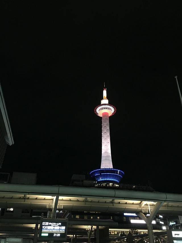 原路返回,回来的时候天已黑,京都塔的灯已经亮起,在夜空中显得格外耀眼。