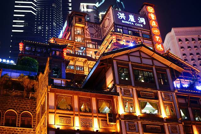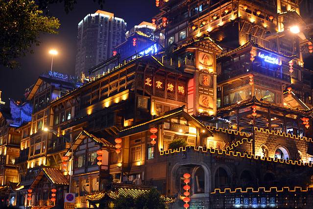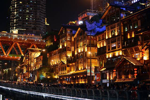 日本直飞重庆,欣赏了重庆洪崖洞的夜景,仿佛置身于宫崎骏的童话世界中——现实版千与千寻