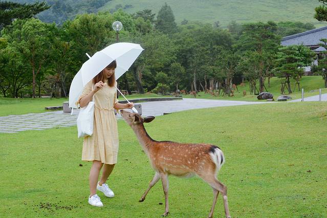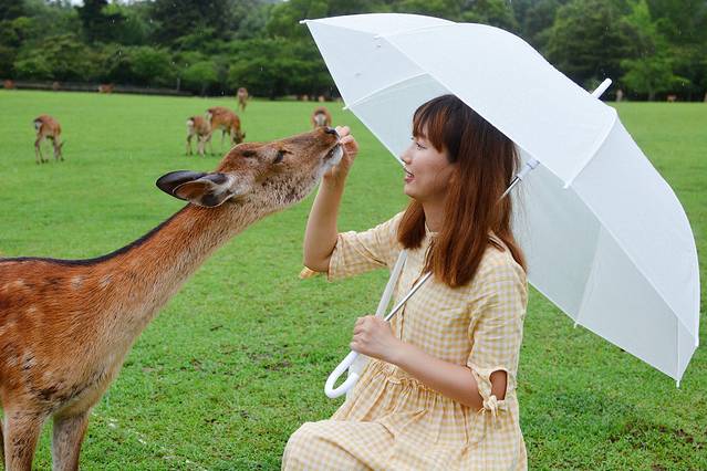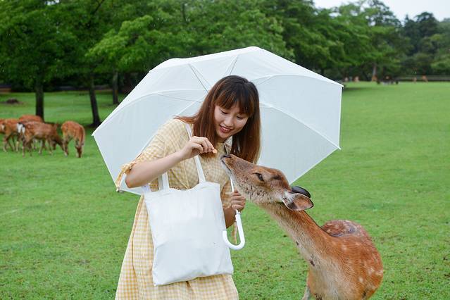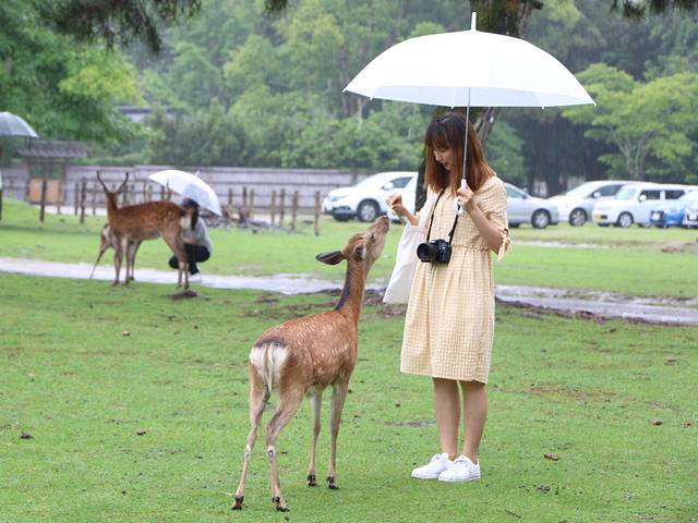 来之前就听说奈良经常下雨,果不其然,我们碰上了下雨,不过下雨天,撑一把透明雨伞走在路上也别有一番韵味。