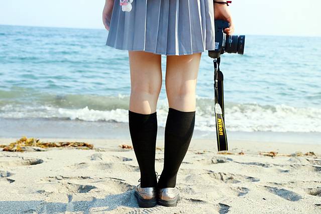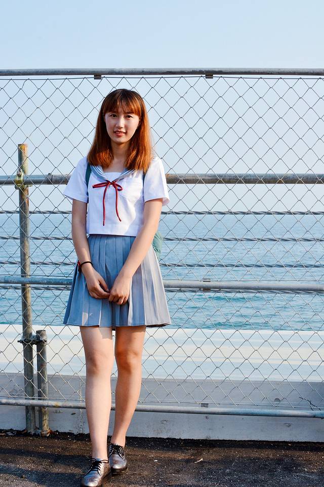 造型需要,换成了JK制服,在国内不敢穿的衣服到国外来穿,假装学生,致我们逝去的青春。