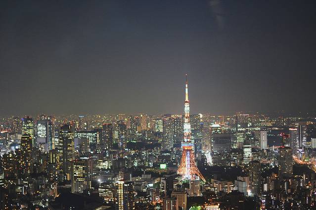 在东京乘坐地铁很快就到达了我们预定好的酒店—,地理位置很优越,很方便。刚到东京,着实的被东京的交通吓了一跳,错综复杂的轨道交通,像一张巨大的蜘蛛网。这几天每到一个地方,刚熟悉那里的交通路线,就又该走了。到达酒店后,稍作休息,我们前往六本木观看东京的夜景。去看看这座红白相间的建筑。
